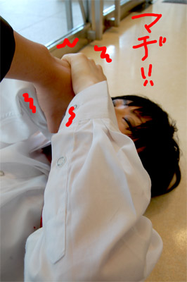 両手首をチカラいっぱい押さえ込まれてます